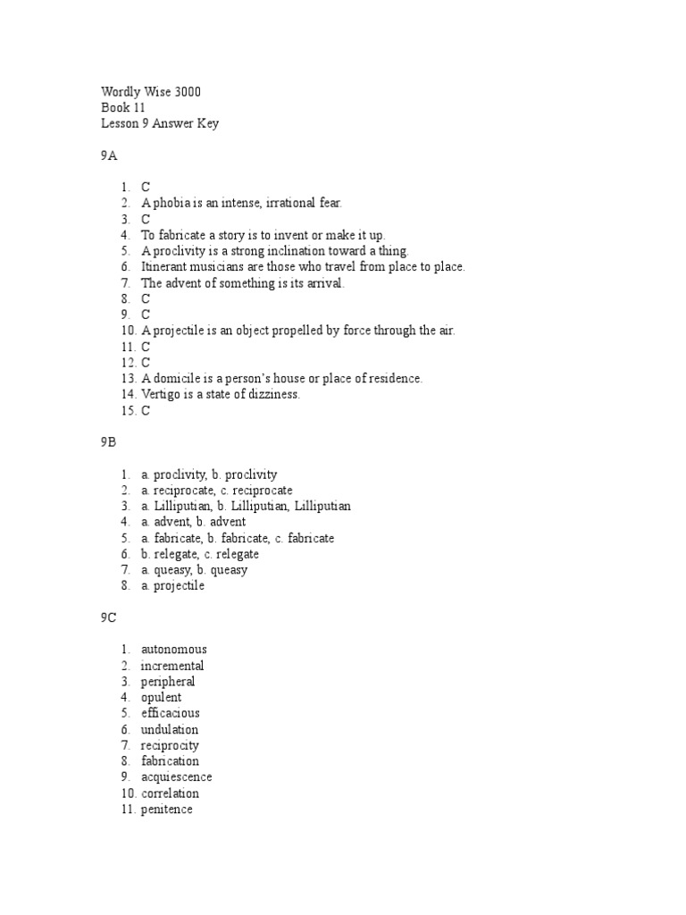 Build vocabulary along with reading, writing, and critical thinking skills with wordly wise 3000! It has 15 lessons and 150 vocabulary words. Ib past papers exam mate; Wordly wise 3000 book 8 lesson 9 answers; Parcc practice test grade 4 answer key;